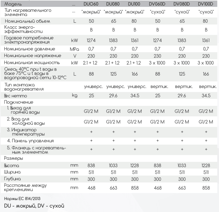 Характеристики - Бойлер электрический Eldom GALANT DRY 60 3x 1000 W DV060D
