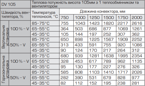 В корпусе DV установлен двухтрубный теплообменник с использованием медной трубы диаметром 22 мм и толщиной стенки 1мм. Все теплообменники производятся и проходят выходной контроль на производстве. Состоит из высококачественных компонентов (медь и алюминий) европейских производителей. Компактный и продуманный конструктив позволяет совместить в одном корпусе энергоэффективный двигатель с питанием 24 вольт и плавным регулированием, двухтрубный теплообменник с системой бесшумных креплений, направляющие систем обдува теплообменника и собрать все в единую систему которая унифицировано становится в корпус и позволяет максимально продуктивно использовать мощность теплообменника при минимальном уровне шума.