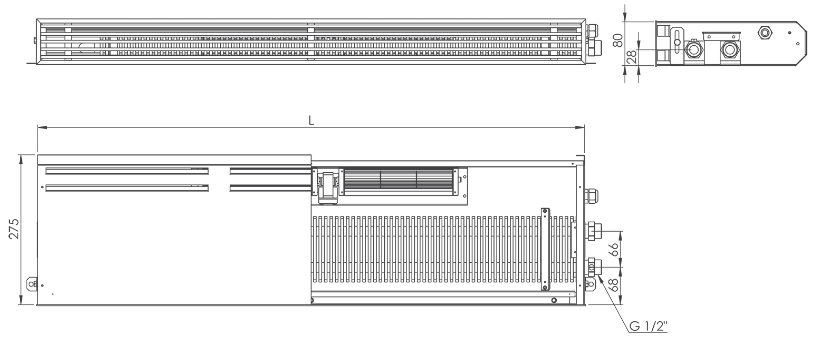 Характеристики - Цокольный конвектор Carrera 275.2000.80 +вент.