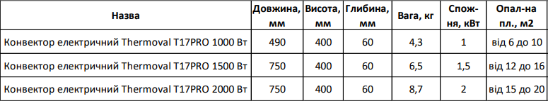 Характеристики - Электрический конвектор (обогреватель) Thermoval T17PRO 1000 Вт