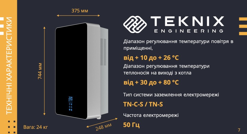 Характеристики - Электрический котел TEKNIX ESPRO 9кВт