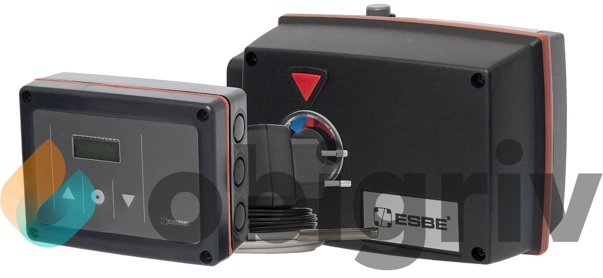 Электрический привод-колнтроллер Esbe CRA121 - поддерживает постоянную температуру теплоносителя, который подходит для больших систем и клапанов типа 3F. Изделие прекрасно подходит для сфер применения, где необходимо поддержание постоянной температуры воды. Установка температуры выполняется с помощью удобных кнопок и графического интерфейса.  Регулировать температуру можно в пределах диапазона +5...+95 градусов. Может легко управляться вручную, с помощью кнопки выключения и рычага. В комплект входит: привод-контроллер, датчик температуры теплоносителя (1,5 м.), комлпект для быстрого монтажа на клапан.