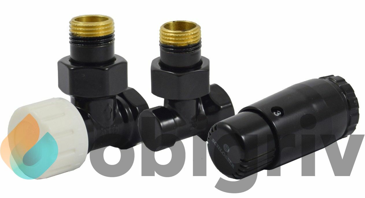 Характеристики - Комплект термостатический Schlosser Standard Mini, угловой, чёрный
