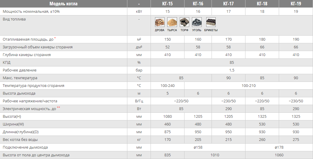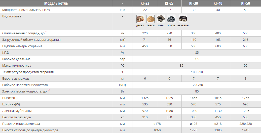 Мощностная линейка котлов типа КГ от 10Квт и до 50Квт позволила эксплуатировать их как в самых малых помещениях ( таких как: строительные бытовки, жилые дома с малой площадью и другие), так и в помещениях с площадью в пределах 500 м\кв.
