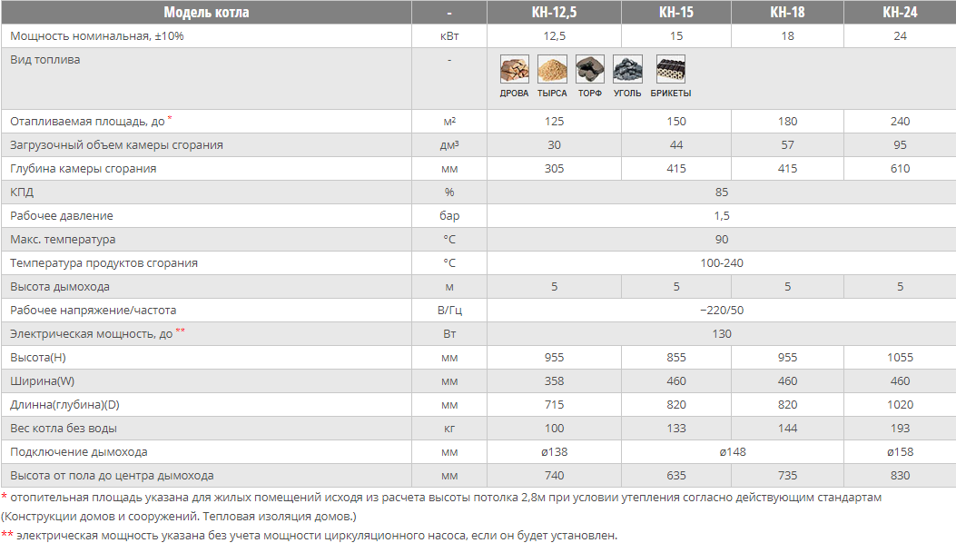 Характеристики - Kotlant КН-15 с автоматикой и вентилятором