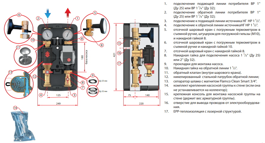Характеристики - Насосная група Meibes MeiFlow Top S UC-CS DN25, прямая, с насосом Wilo Stratos PICO