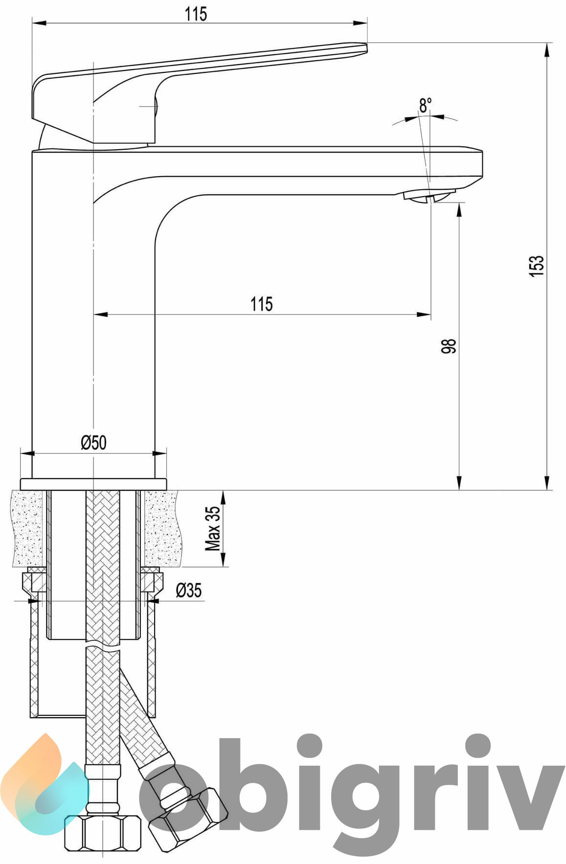 • Шланги для подключения воды – 2 шт.: В комплекте шланги стандартной длины, которые позволяют быстро и легко подключить смеситель к системе водоснабжения.