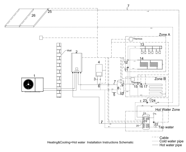 Тепловой насос инверторный Termojet Suntide – сплит система разделены внешний и внутренний блоки. Благодаря своей интеллектуальной системе управления, тепловой насос TERMOJET может максимизировать точное сотрудничество с потоковыми вспомогательными источниками тепла, такими как газовые котлы, электрические нагреватели и т.п., для обеспечения эффективной и стабильной работы друг друга.