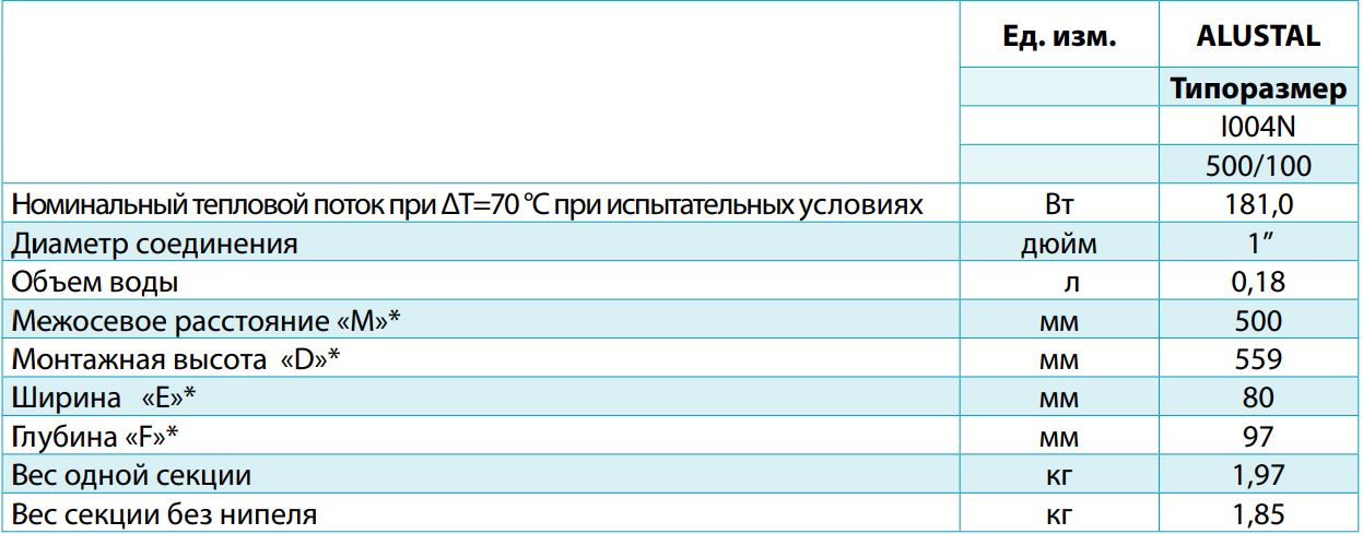 Характеристики - Біметалевий радіатор Fondital Alustal 500/100