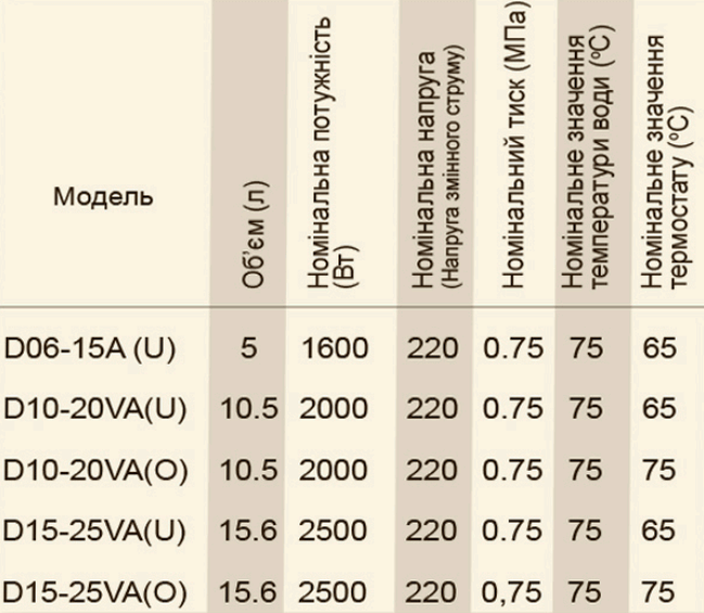 Характеристики - Бойлер електричний MIDEA D06-15A(U)