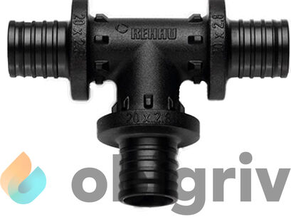 Призначений для розгалуження потоку води на два напрямки, а саме для з'єднання способом аксиальной опресування трьох труб Rehau діаметром 16-40 мм. Монтується за допомогою набору спеціальних інструментів RAUTOOL (насадки з зеленим кільцем для Rehau Stabil, насадки з синім кільцем для Rehau Flex)