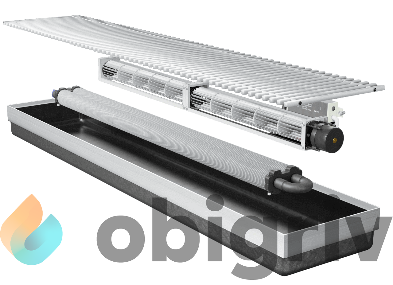 Принцип работы: внутрипольный конвектор с принудительной конвекцией (с вентилятором):