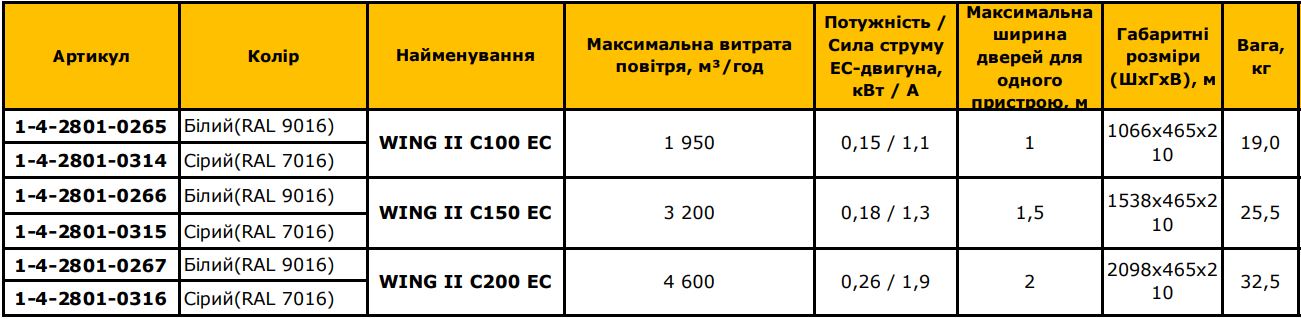 Список вариантов товара - Воздушная тепловая завеса без нагрева VTS WING II 150 (EC) s